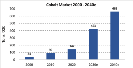 Figure 1: IEA Sustainable Development Scenario Forecasts 5x Cobalt Demand Growth by 2040
